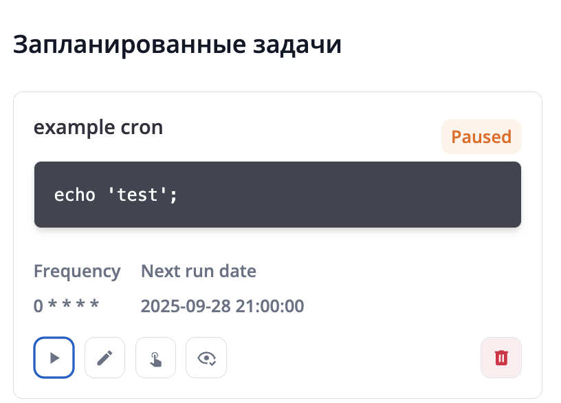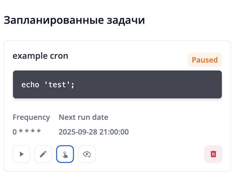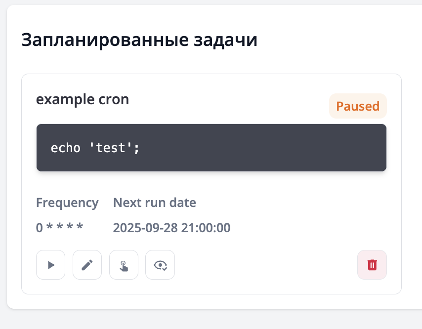 В разделе Запланированные задачи вам доступно изменение интервала или команды, где можно поменять частоту запуска задачи. Также задачи можно корректировать или удалять из планировщика через меню Действия: ищите кнопку Редактировать или Удалить задачу.