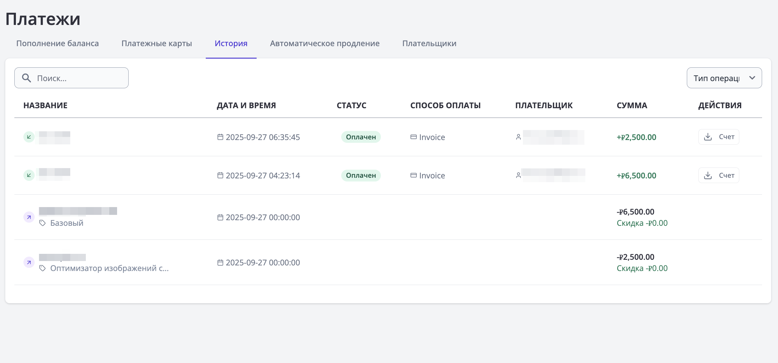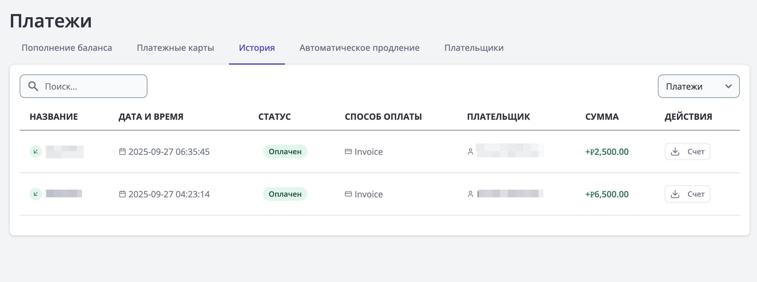 - Вы можете скачать инвойс для каждого пополнения, нажав кнопку "Скачать".